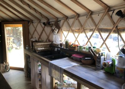 Avec sa toile marine en couleur Toast, cette Yourte se fond parfaitement dans le décor. Montée dans la Vendée, elle offre l’espace pour accueillir des stagiaires dans un grand jardin.