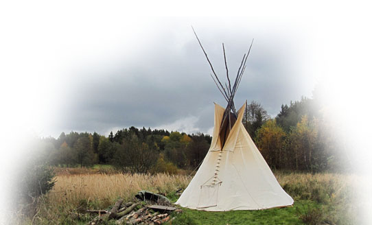 Le bois utilisé traditionnellement est le Sapin, le Méléze ou le Pin Sylvestre….En général, on utilise des troncs sec et fins. Dans de jeunes forêts on peut facilement trouver le matériel adapté. Les perches des Tipis doivent être sèches, droites rondes, élancées et écorcées.L’écorce s’enleve facilement quand le bois est encore frais.