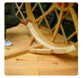 Ajustement de la bande en contreplaqué souple qui fait le tour du plancher de la Yourte.