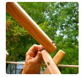Ici, on encastre le treillis dans le cadre de la porte. S’il n’ y a pas de porte ou de fenêtre, on encastre les treillis de la Yourte entre eux et on les assemble avec une corde.