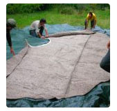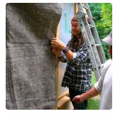 Il faut être plusieurs pour maintenir le feutre en place. On peut également s’aider d’une cordelette.