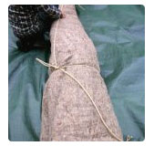 On le roule en forme de cigare et on l’attache à l’aide d’une longue corde.