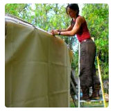 La Toile décorative en coton va être attachée à l’extérieur de la Yourte.